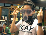 2004.09.12 はれ Bとだんごのアオケン雨合羽着用の図、記念に撮ってもらいました。 |