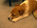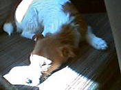20050321 はれ いい天気で朝の散歩はしゃぎすぎたのか、出勤中の車で爆睡。 |
