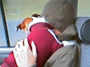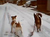 20051208 雨ときどき雪 ずっと降ってます、かみなりも1日じゅうです。 そうそう、TERRYに続いてAイちゃんからもお泊まりの日の写真が届きました。朝のサンポにでかけるところ。「さんぽいくの?」「うん、いく」 |