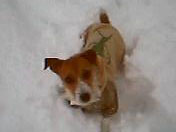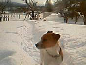 20051222 あめ 退屈でたいくつで、ウギャ〜とひっくりかえってひとり大暴れ中。かと思えば裏庭へ探検に。屋根雪に埋もれても知らんよ。 |