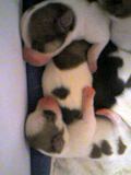 | 12/2にダンゴは無事出産しました。痛いと鳴く事なく、ひたすらふんばって4時間かけて6匹の赤ちゃんを産みました。アーとかヤーとか言ってるチビちゃんもかわいいのだけど、たくましくなり、とってもやさしいダンゴ母さんの成長っぷりにも日々感動です。 →お腹いっぱいになり、みんなでしっついて寝てる所。 |