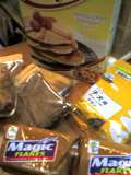 | ギャー!やったぁ、テーブルの上におやつがいっぱい、だけどよ〜く確認して手をのばさないと、犬用とか書いてあるし。 |