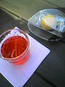 | 行って来たんですよ、コラボンズで。今回の目的の一つ辻さんの個展会場にて、辻さんの器でお茶を頂いてきました、お庭でのんびりと。
